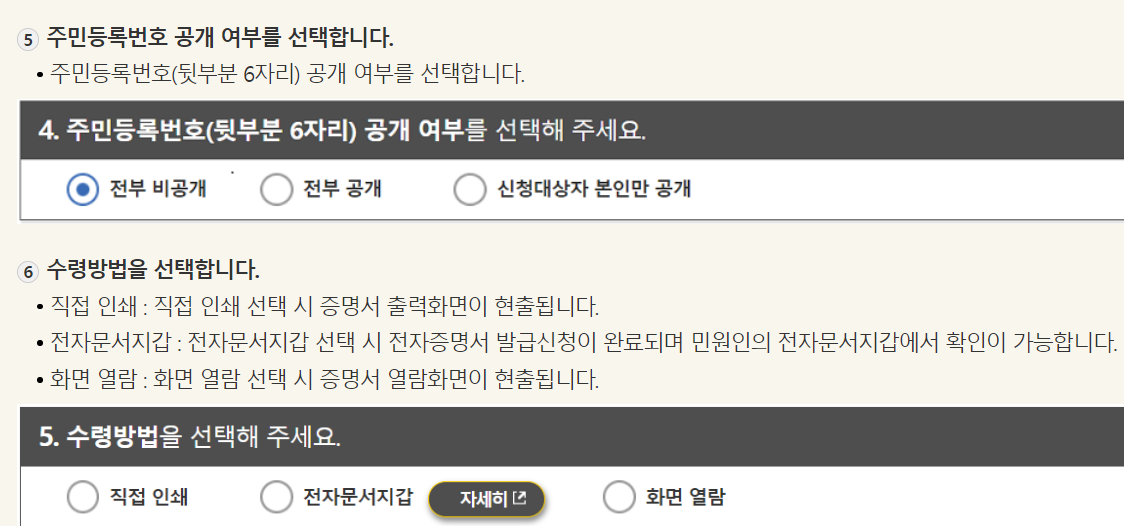 5. 주민등록번호 공개여부를 선택합니다.