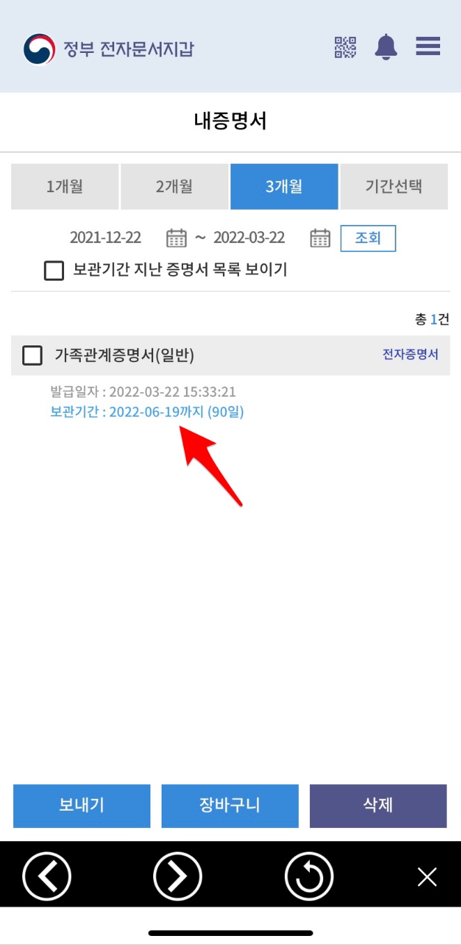 정부 24에서 전자문서지갑 내역 "가족관계증명서" 신청분 확인 발급받기 전에