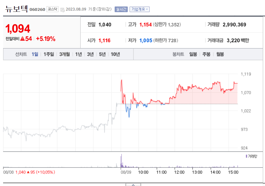- 주가 상승: 카눈 관련주 소식에 주말부터 15.17% 상승